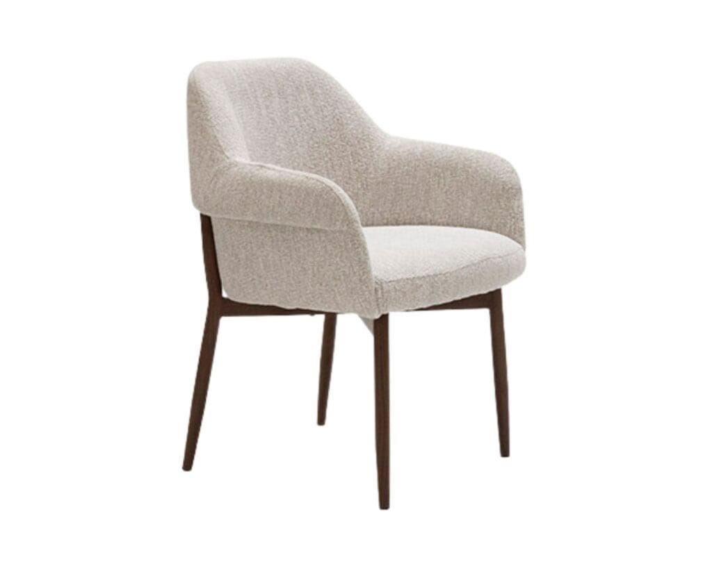De Geogre eetkamerstoel combineert modern design met optimaal zitcomfort. De stoel heeft een strak en tijdloos ontwerp, waardoor hij moeiteloos past in diverse interieurstijlen. De zitting en rugleuning zijn bekleed met hoogwaardige, zachte stof die niet alleen comfortabel is, maar ook eenvoudig te onderhouden.
